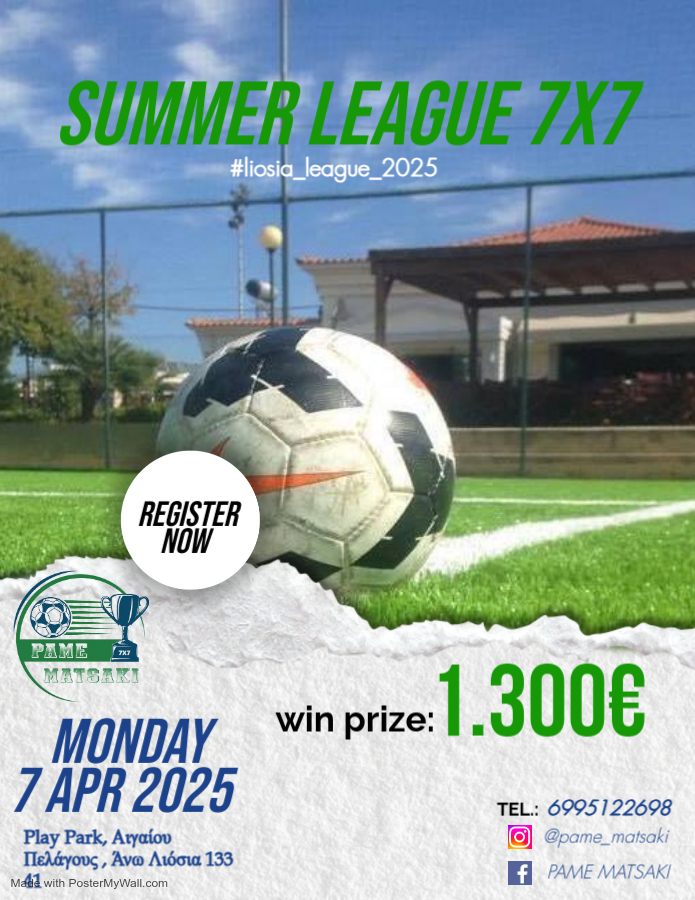 #pamematsaki #summer_league_25 #liosia_league #registernow #pame #matsaki #minifootball #april9 #summer #tournament