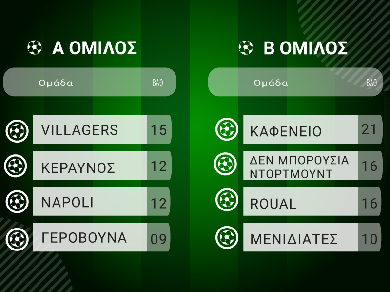 Με το παιχνίδι των Villagers εναντίον της Core FC το βράδυ της Τετάρτης ολοκληρώθηκε και επισήμως τόσο ο Α' όμιλος, όσο και η πρώτη φάση της διοργάνωσης.