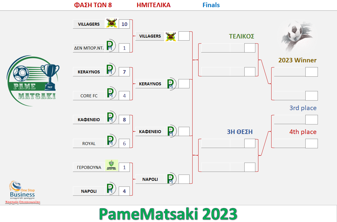 Εδώ θα βρεις αναλυτικά τα αποτελέσματα των αγώνων της φάσης των «8» και τα ζευγάρια που προκύπτουν στα ημιτελικά της διοργάνωσης του Pame Matsaki 2023-Liosia league.